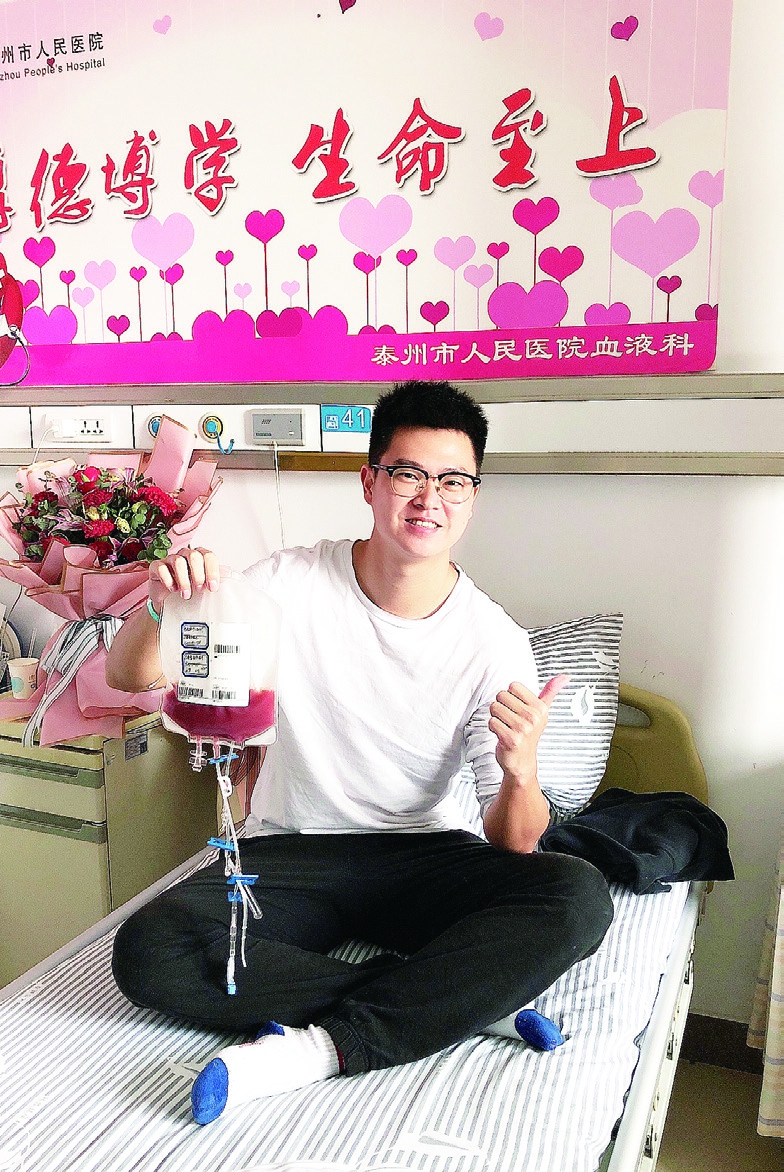 3月31日上午9点,陆科锦安静地躺在泰州市人民医院血液科病房里,开始捐献造血干细胞。深红色的血液从肘静脉流出,被一点一滴收集到储血袋中,汇聚成一股爱的暖流,为配型成功的陌生人带去生的希望。